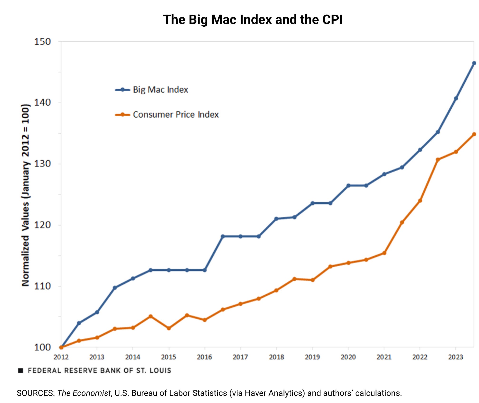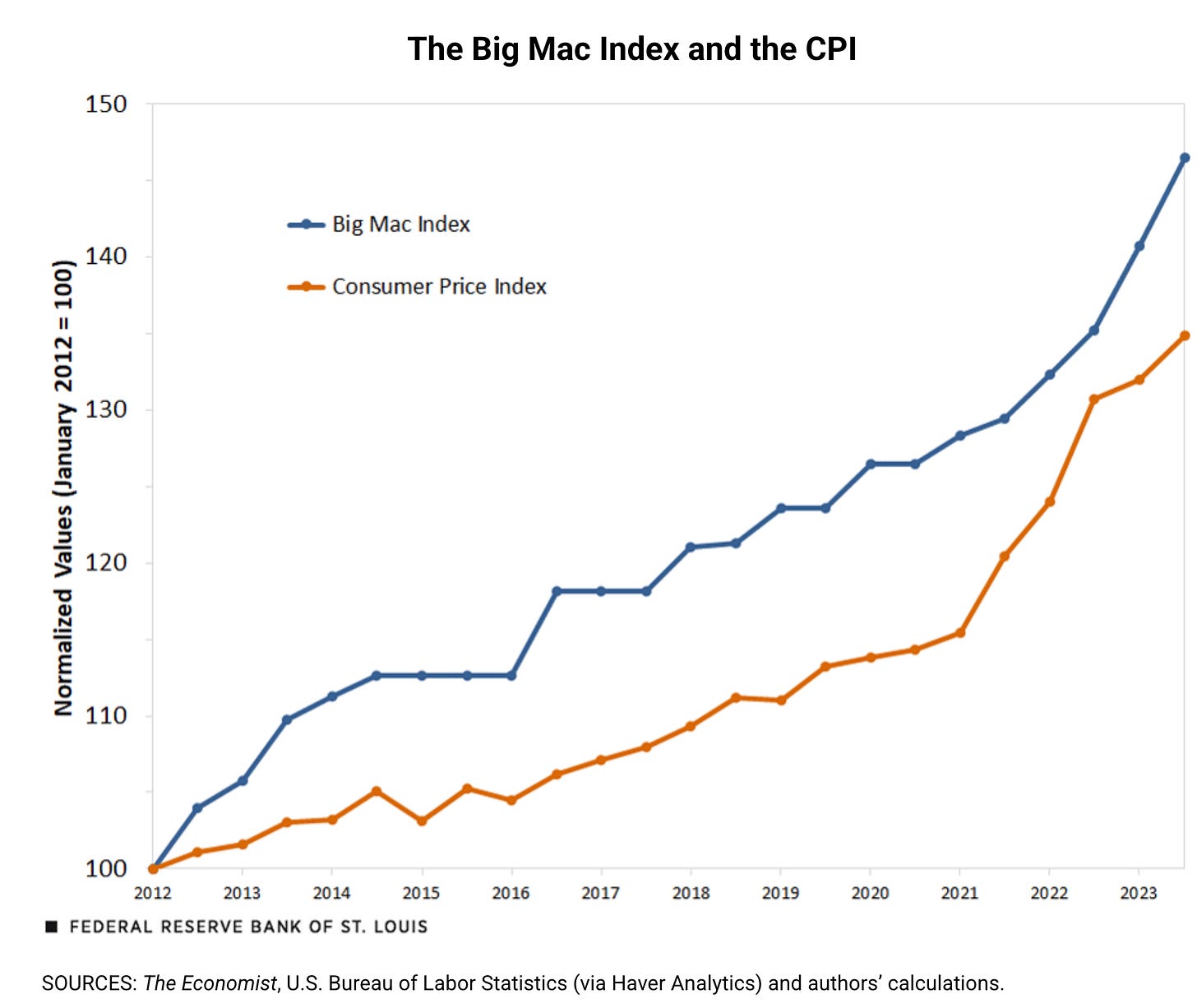 But Big Macs didn’t go up 2.5% per year. They went up 4% per year.
