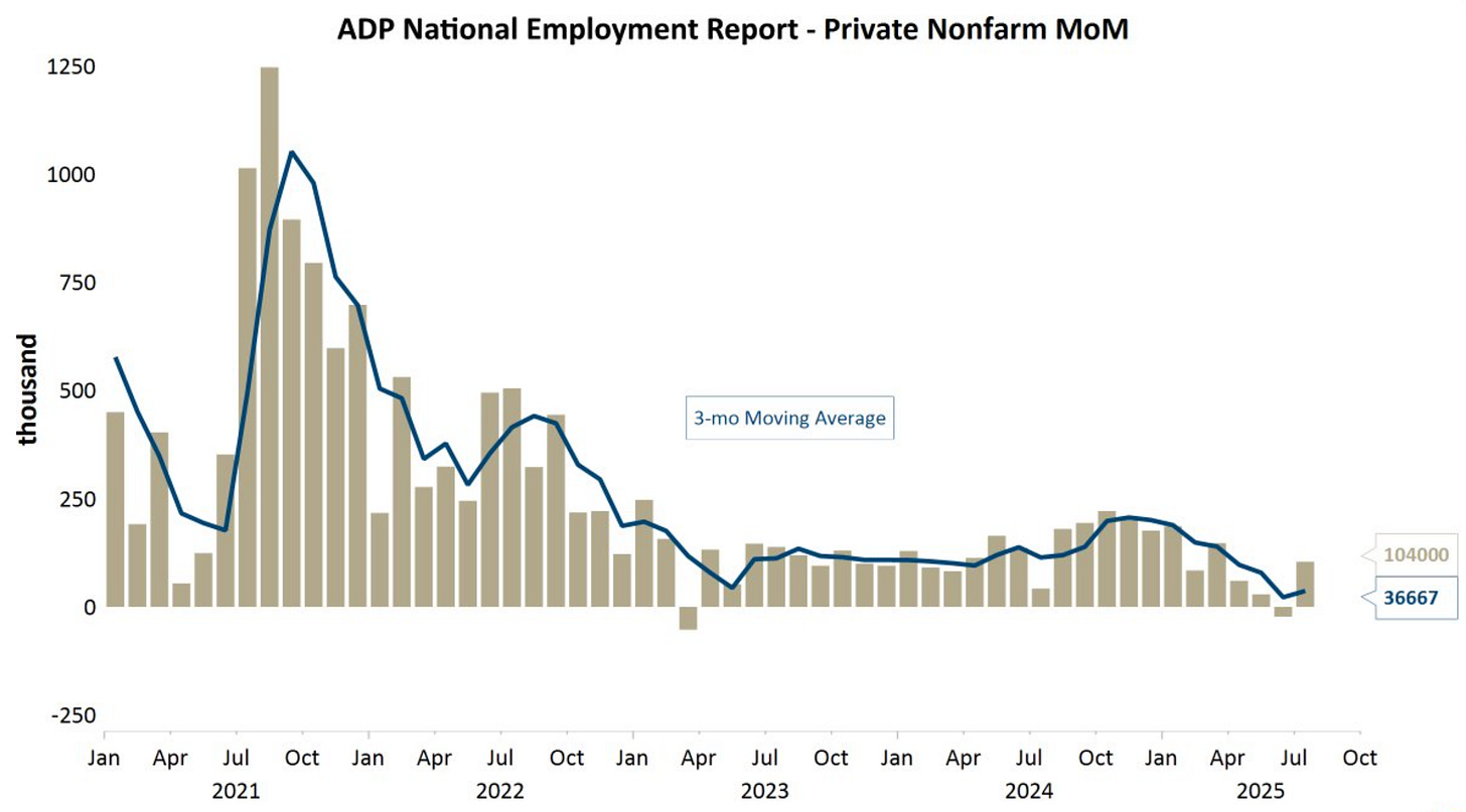 Beyond GDP, the other big number last week was jobs, which rebounded to a positive 104,000 on the ADP survey.