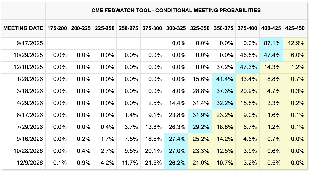 The BLS revision bumped odds rate cuts could start as early as September — see above.