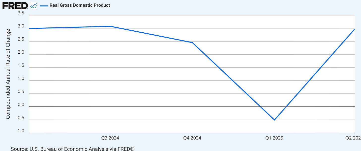 But the Fed's still resisting on imaginary tariff inflation. Meaning we could keep getting slow growth until Jerome Powell changes his ways, gets bullied into it, or leaves office next May.