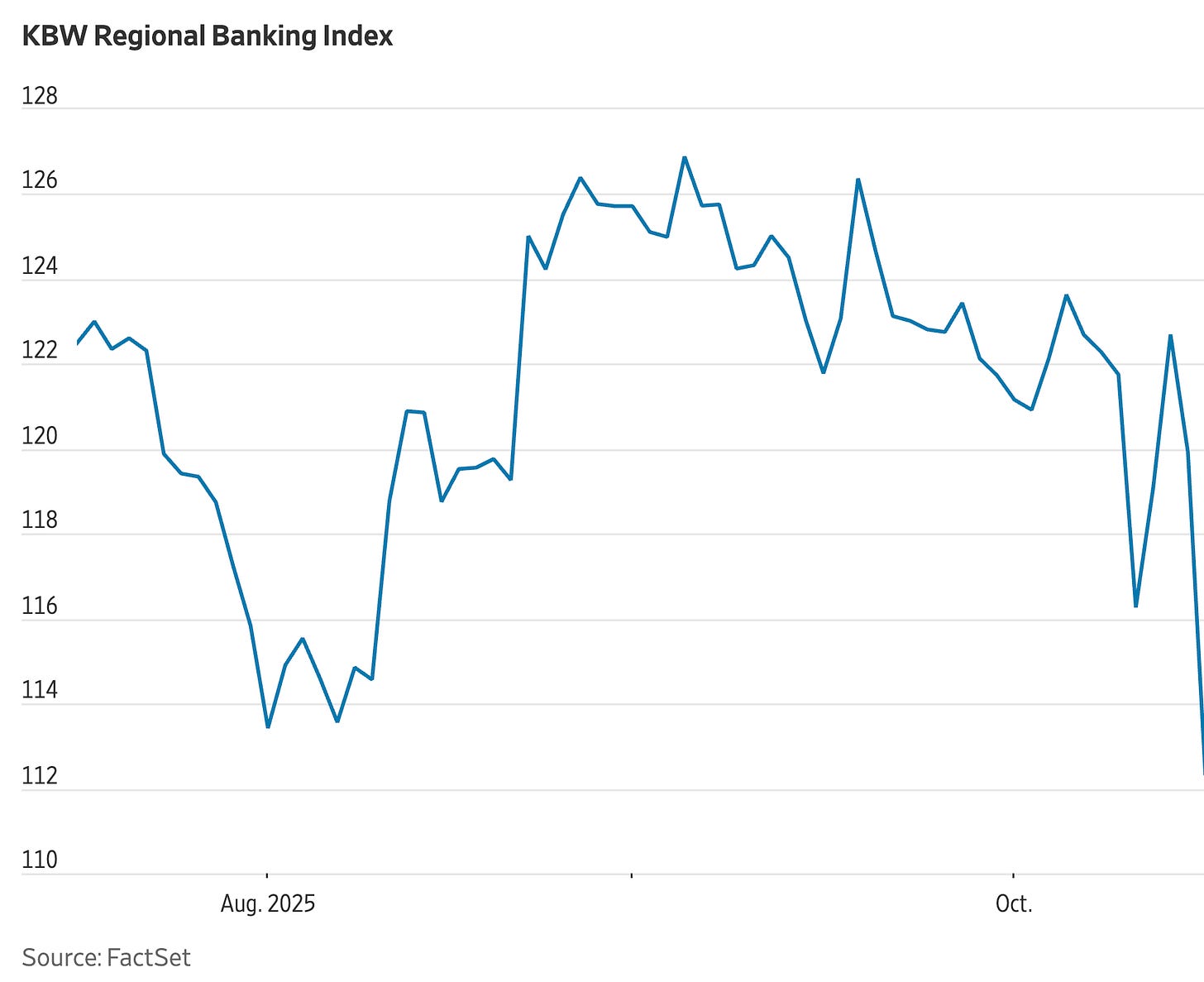 The trigger was the bankruptcy of First Brands, an apparent $6 billion ponzi-scheme that bought up boring car parts makers, borrowed heavily against them. And blew up with at least $2.5 billion vanished.