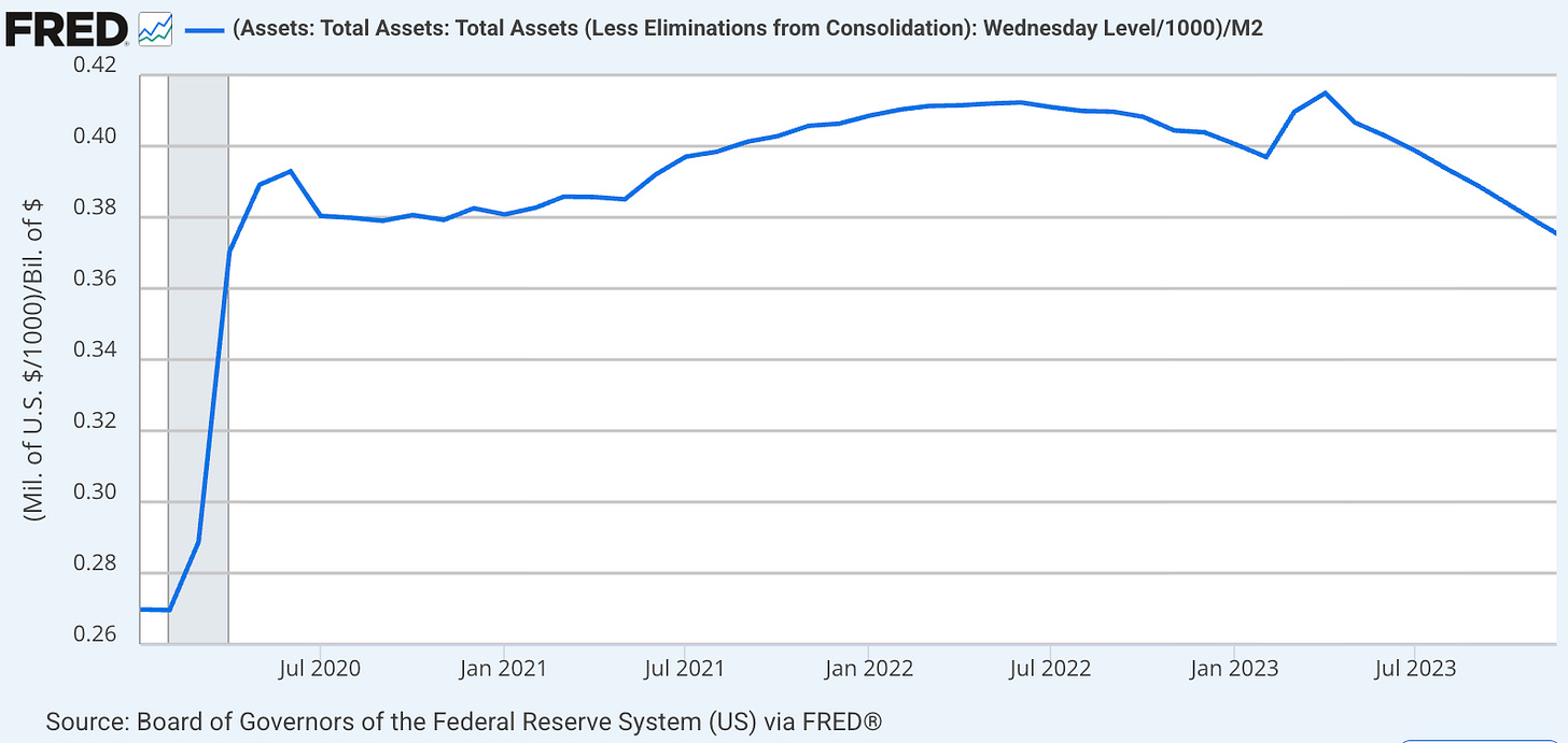 Bidenflation scared the Fed straight, so they jacked interest rates to choke off loans and flipped to tightening -- selling everything in sight and cancelling the dollars.