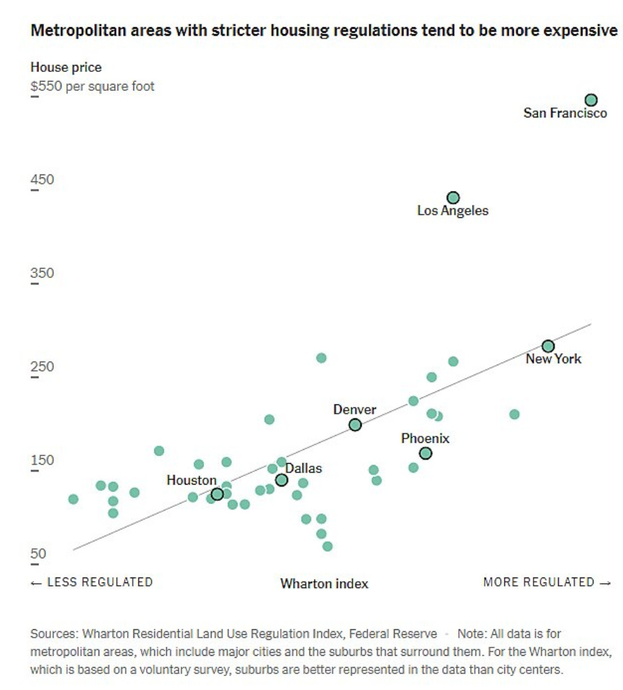 Deregulation helps: zoning, union rules, and environmental mandates could cut $80,000 to $100,000 off the cost of a house.