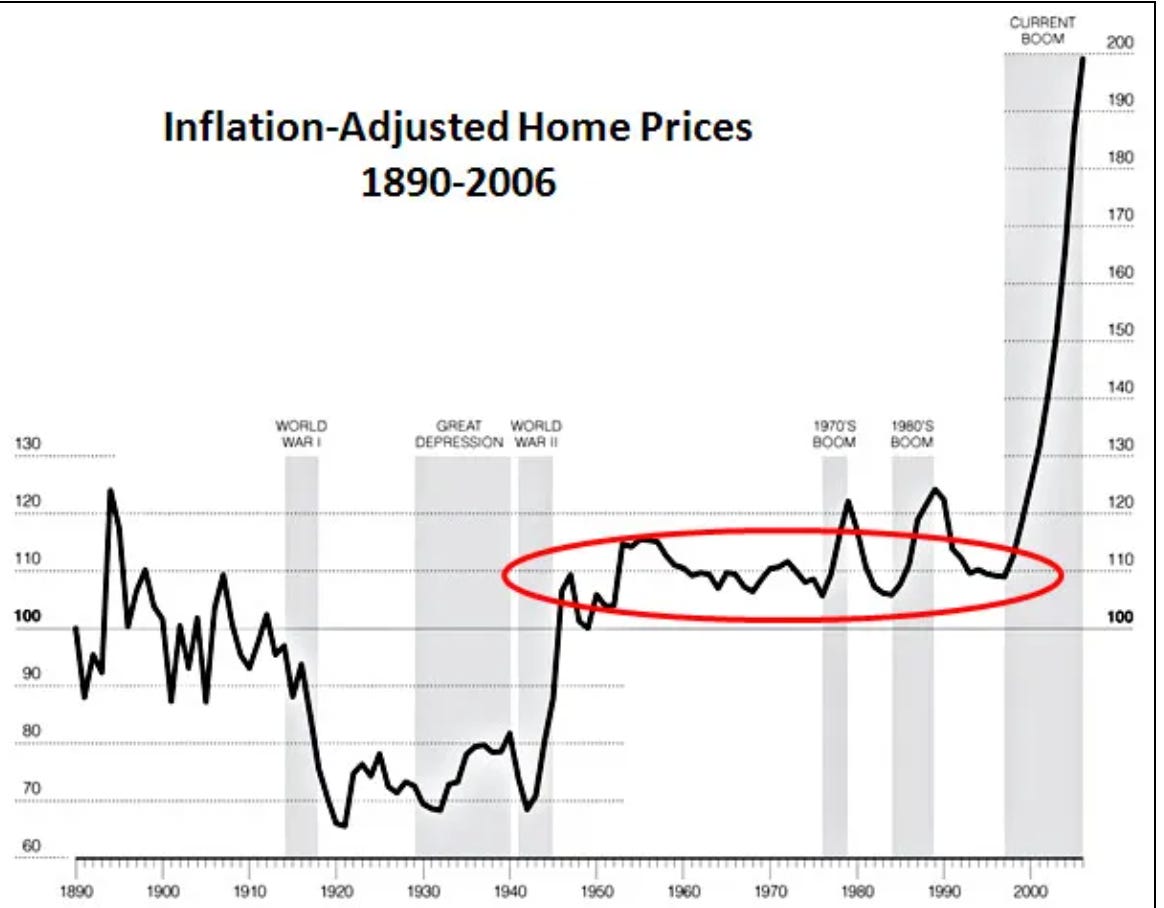 But the big one is the Fed. Because artificially low rates make every asset go up, from stocks to gold to houses. They turn houses into an investment good with the premium to match.