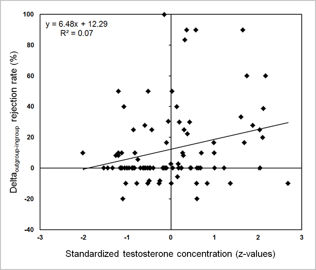 So if you're living in North Korea, you're probably more concerned about in-group domination. If you're living in Israel at the moment you're probably more concerned about the out-group. And, either way, men of course have more testosterone — hence more out-group focus.